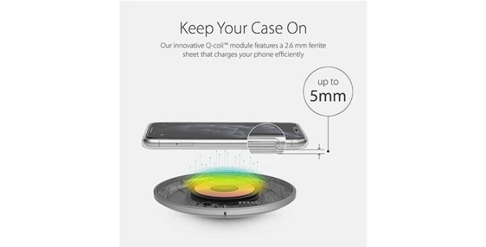 Since most people have a messed-up workstation in the office, you will need a wireless charger that will keep your phone safe and charge it simultaneously. It is why Moshi has become one of the best-known wireless phone chargers in the market. The silicone surface ring present on the pad will secure your phone and keep it safe. This device is capable of charging the devices at quite a fast rate, up to 15W maximum. Also, if there is a metal object closely, the wireless charging will be disabled automatically.