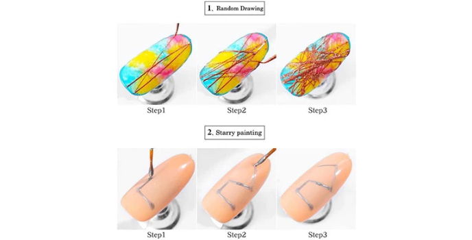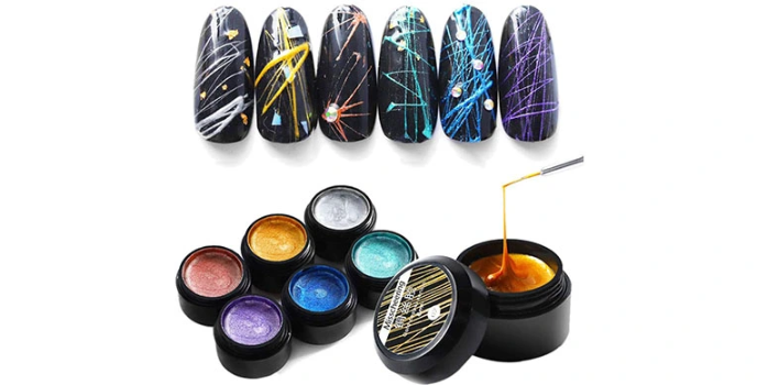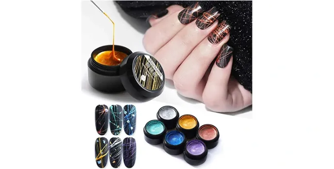 The gel art is a liquid that has a volume of 0.27 fluid ounces in all those listed colors. The nail spider web line gel art is used on artificial nails or real nails easily and perfectly. Mosunx provides spider gel nail polish to decorate nails top surfaces and surfaces of paper, artworks, and more.