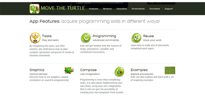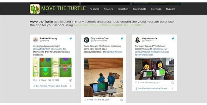 Move the Turtle is a coding platform that has been recognized as a great learning tool for kids to understand coding. The kids can easily acquire programming skills in varied ways. Programming languages like loops and variables are used to clarify the concepts. The advanced technologies of graphical and spatial orientation are employed. The tool is effective for school and pre-school project purposes. The user-experience of the tool is impressive, and the users are satisfied with the platform.
