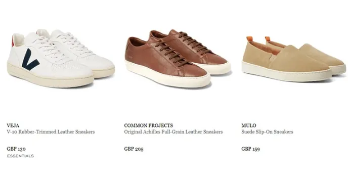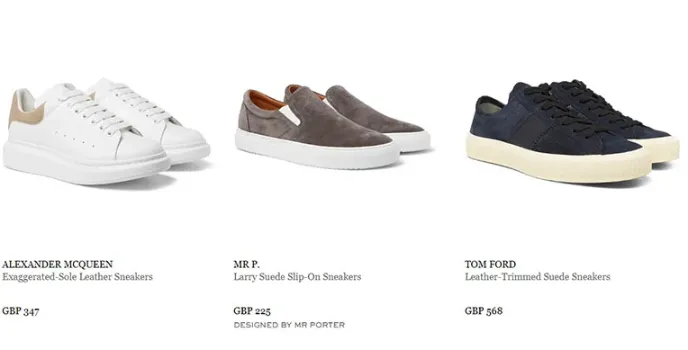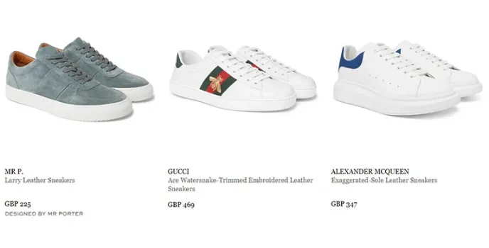 These affordable collections come in various brands, which include Nike, GUCCI, VEJA, ALEXANDER MCQUEEN. Nike Air Force collection and Adidas collection are the best collections on this platform as they offer A good price range for both men and women, which are totally recommended by Mr. porter's online store's official website.