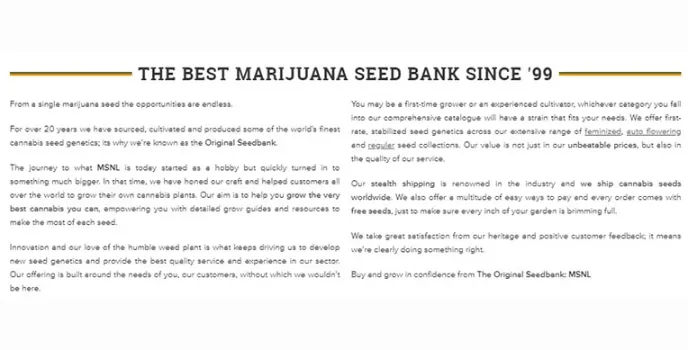 Utilize an endless supply of marijuana seeds to convert them into quality CBD products for severe pain healing without medical treatment. The MSNL Marijuana Seed Bank has existed since 1999 and is over 20 years of source for producing the finest genetic cannabis seeds, which is also called the original seed bank. Nevertheless, the innovation and love of humble weed herbs keep driving to produce new genetics and quality services across the sectors.