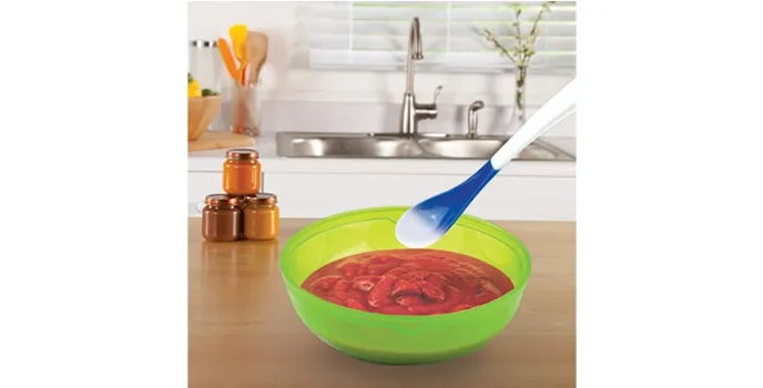 Munchkin Infant Spoon is made with a white-hot system, and the tip of the spoon turns white when the food is hot.