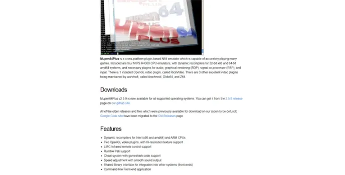 Mupen64plus comes with the support for Intel (x86 and amd64) and ARM CPUs that have dynamic recompilers. This emulator for PC comes with two OpenGL video plugins with support for high-resolution textures, LIRC Support for infrared remote control, and Rumble Support for Pak.