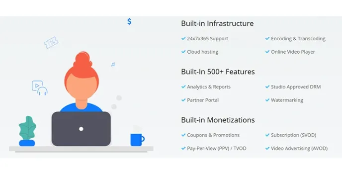 Muvi is a video management solution that enables companies of all sizes to launch an audio/video streaming network with a custom domain for broadcasting VOD, live streaming services, and audio or music. Administrators can use the all-in-one OTT framework to construct metadata, manage subscriptions, publish user-generated content, process payments, and generate promotional coupon codes, all from a single guide. It also allows teams to add subtitles to videos that have been curated.