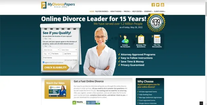 Being the best budget-friendly online provider, My Divorce Papers online divorce services help complete process annulments and separations online, just by paying a one-time charge of $159 to prepare and review divorce documents and save thousands of dollars in divorce fees.