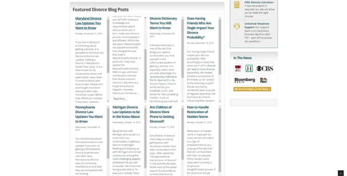 Free Video Library on taxes, estate planning, and much more. Detailed instructions on serving your spouse. Complete Marital settlement agreement. Free name change for wives. Thorough service support. A free parenting plan is also included. Child-related forms are included. 15 years in business. Print divorce forms. Child support calculator. Alimony calculator. Unlimited telephone and email support.
