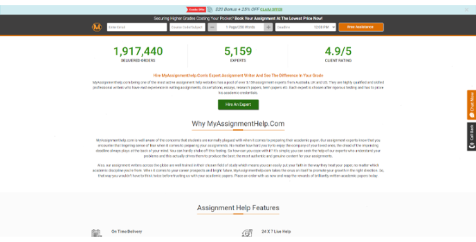 MyAssignmentHelp offers essay writing services and delivers on-time and satisfactory results. This paper plagiarism checker assists Indians in preparing their assignments, reports, or projects. The site follows a systematic process to add details like the topic, subject, and deadline before placing your order. AssignmentHelp hosts a large group of academicians and experts from various fields that prepare the papers.