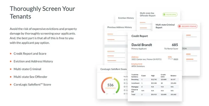 It helps you avoid the risk of expensive property damage and evictions by thorough screening of your applicants. It offers you this feature free of cost with the applicant pay option.