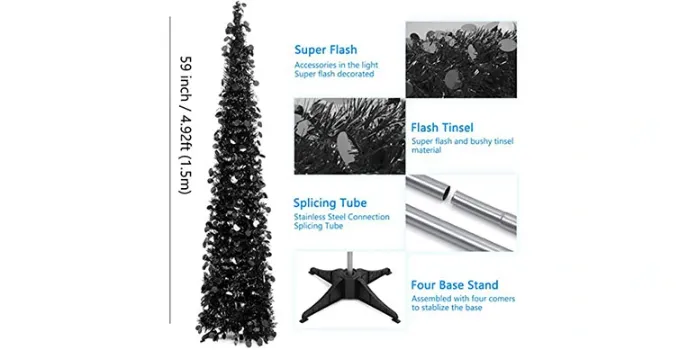 There are two different styles of Christmas trees in the day and the night. If you like trees at night, then you can hang some string lights to make it lit, and adding some lights makes it way prettier in the dark. If you are using this tree outdoors, then make sure to use a heavy object to hold the tree's base to keep it in place at all times.