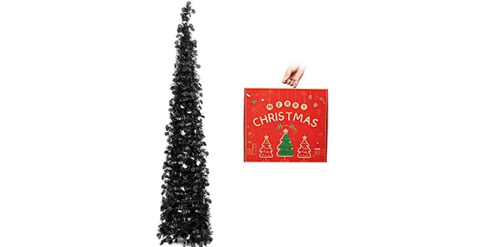 This tree is a perfect pull-up tree for your holiday Xmas supplies. You can easily place this tree on the side of your fireplace and hang up cute little dรฉcor items. Enjoying the festivities is made better with this black mini Christmas tree in your homes.