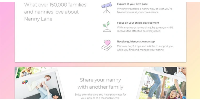 It has over 150000 families, and nannies love nanny lanes, and it explores at your own pace, focuses on your child's developments, and receives guidance at every step.