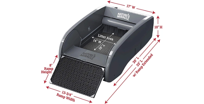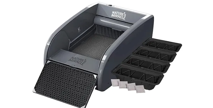 One of the best automatic cat litter boxes is Nature’s Miracle brand. It has a clean paw ramp, carbon filter, waste receptacles, detection sensor, LED lights, and more. Nature’s miracle enables owners to operate the box hassle-free at their fingertips.