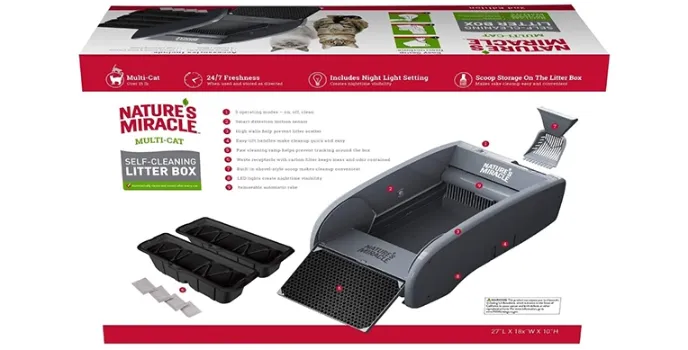 Nature’s Miracle is a self-cleaning multi-cat litter box manufactured with automatic scoops technology for every use, leading to keeping a clean and fresh start all time.