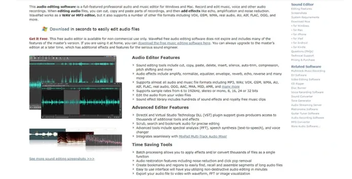 Being an expert musician, you donβt have enough time to spend on editing. So, here is the time-saving Wavepad tool built with batch processing functionality, audio restoration for click pop removal, non-destructive editing through easy to use interface for long sounds, music files. Hence, quickly edit, share by powerful effects and tools for multimedia projects, films, ringtones, etc.