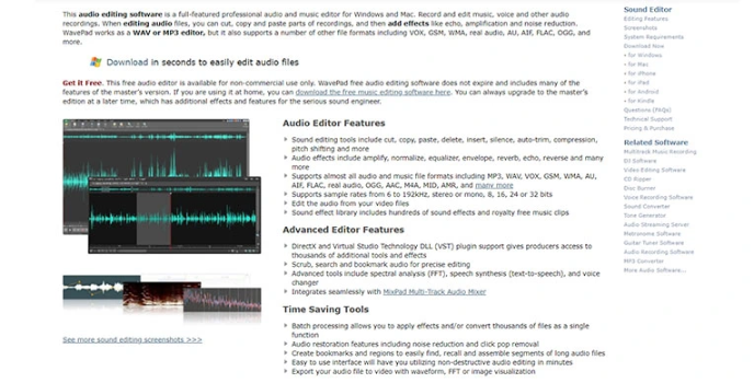 Being an expert musician, you donโt have enough time to spend on editing. So, here is the time-saving Wavepad tool built with batch processing functionality, audio restoration for click pop removal, non-destructive editing through easy to use interface for long sounds, music files. Hence, quickly edit, share by powerful effects and tools for multimedia projects, films, ringtones, etc.
