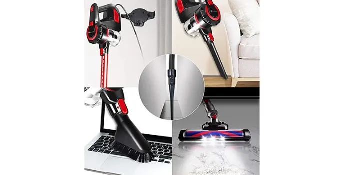 The multi-task power brush helps clean the invisible dust particles and helps to remove the ground-in dirt. Also, it helps to remove your pet's hair from the hard floors and carpets. You can easily and quickly convert it to a handheld cleaner for cleaning stairs, sofa, car, etc. The multi-task brush head with LED light enables you to see the hidden dust in the dark place and vacuum dust under the furniture's bottom.