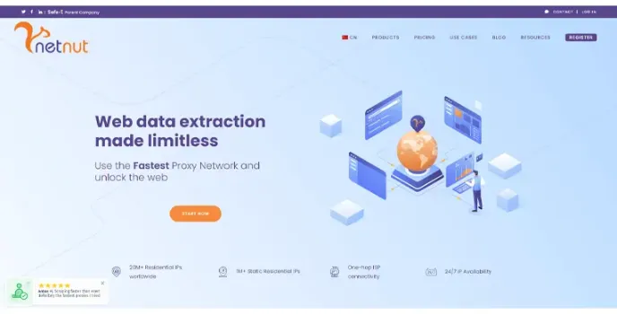 Unblock blocked websites with the high-performing proxies extension like NetNut, which is one of the best amazon proxies that enable registering accounts, which offers different types, including rotating residential, US datacenter IPs, static residential IPs.