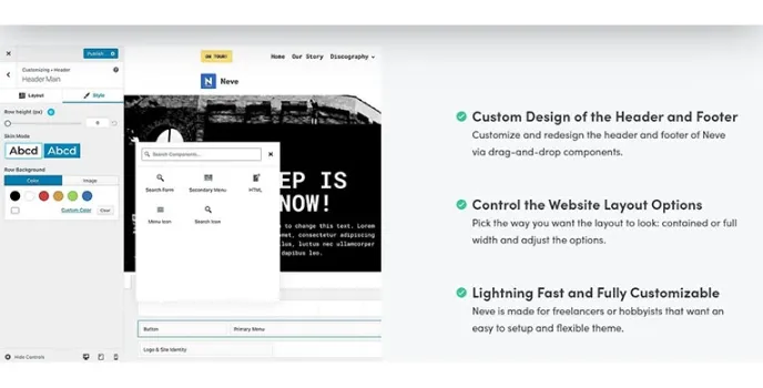 Neve has a customized yet redesigned header and footer. There are several WordPress themes that are easily available online. The users can look for the themes online and make use of the same by incorporating them in the designing of their projects.