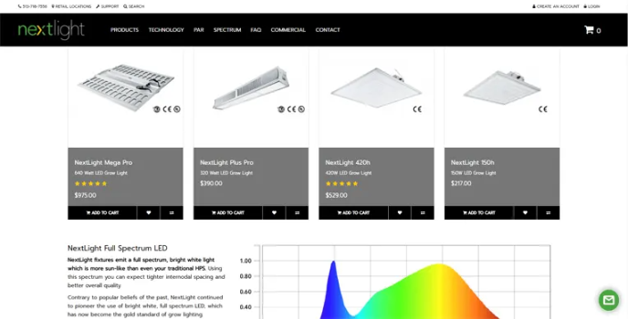 NextLight is known for its mighty commercial LED grow lights, which can rival the strength of HPS grow lights in terms of intensity. NextLight solutions offer the as well as the highest quality production and yield. Products from NextLight are guaranteed to increase your profit per square foot to new heights.