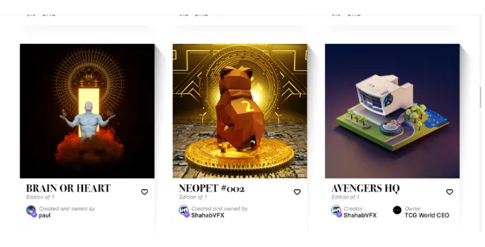 Therefore, NFTb provides a varied range of trending collections that gives a clear sort list to buy, sell, and trade arts including Live Auction, Reserve Price, and Fixed Price. Collections are Heritage, Cyber Heroes, ATLAS - BTC, Alien Headz, etc.