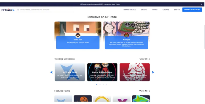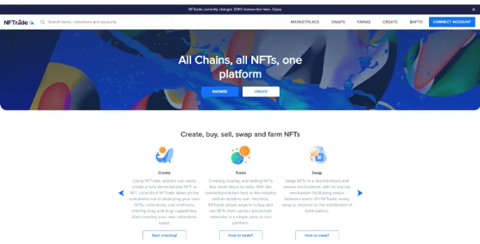 NFTrade binance NFT marketplace is a user-friendly designed and lowest fees transaction platform where users grant permission to create, swap, trade from various blockchain networks in a few clicks. It is perfectly suitable for artists, beginners, and other NFT lovers.