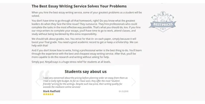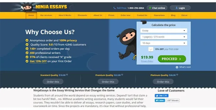 Ninja Essays is one of the most popular writing services platforms that aims to deliver high-quality, plagiarism-free work throughout the year. These services come with great affordable and flexible prices and discounts.