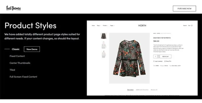 Get this easy-to-use and simple to set up a North WooCommerce theme from Wordpress that assures low maintenance and enhances the presentation with its Power Elite support from Fuel Themes. There are different product page styles added to meet the various requirements. Also, there is a listing styles feature, wherein you can have multiple product listing styles that are powered with filters and AJAX loading options. Some of the other features include pagination options, header styles, plugins, multi-currency, advanced search, etc.