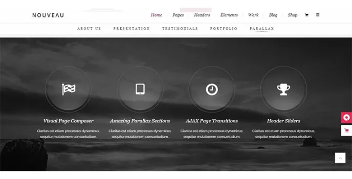 The users can install the demo content import with just one click. Plus, the admin interface is robust yet highly intuitive. Nouveau multipurpose WordPress Website Theme includes a parallax image, fixed header, sticky header, customizable footer as well as a powerful expandable search field.