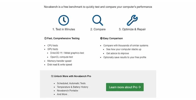 If you want to purchase a new computer or already bought one and see how powerful it is, you can do a software test. Novabench is a super-fast and best benchmark software that lets you evaluate your hardware to see its capabilities. It is not only a reliable service, but it also gives extremely accurate results. It performs complex tests on your system so that you can see if there are any minor or major problems in it.