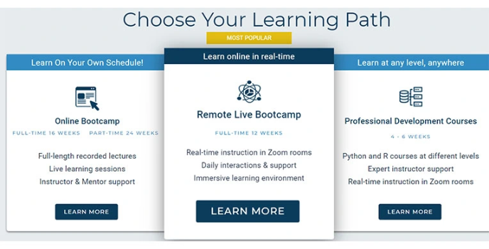 During the pandemic, the NYC Data Science Academy encourages real time instruction in zoom rooms. Come experience an immersive learning environment with daily interactions with tutors. The biggest advantage of the academy is to learn from any level from anywhere. Users can enrol in Python and R courses at any level with real time teaching from experts. The online coding bootcamps help improve their coding skills by choosing from any level.