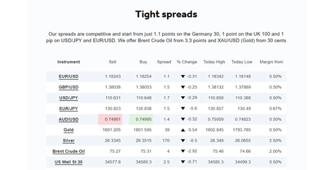 Tight CFD Spreads