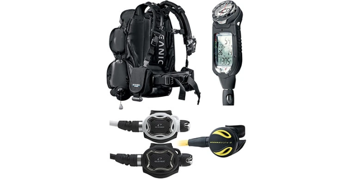 The scuba diving package also includes a Torch, companies with the OceanPro BCD regulator with QLR4 weight pockets. The Open water package comes with extensive accessories and comes with a reliable design.