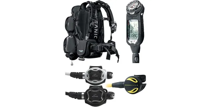 Oceanic ProPlus 3, Scuba Diving equipment package includes Oceanic Jetpack Travel Back Inflation, BCD regulator, Oceanic Pro Plus 4 Computer along with Oceanic Alpha 8 Octo regulator with Rubber Hose. These wetsuits are also integrated with the Oceanic ZEO FDXi YOKE Regulator. Just like fishing equipment, they serve well as recreational paraphernalia.
