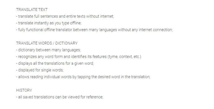 Offline Translate is the best offline translation app because it has an autocorrecting feature that corrects the mistakes in the languages. It has its dictionary. This even adds extra words to the sentences to make them more meaningful and less complicated. Its dictionary corrects the sentences and format of the sentence. Autocorrect makes typing easy by suggesting correct words and characters to the user.