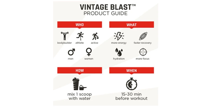 Old School Labs Vintage Blast boosts up your strength and endurance to help you work out harder and for a longer period. Vintage Blast, unlike other pre-workout supplements, with its unique two-stage formula, provides balanced energy, Nutrition, and hydration throughout the training session. The result of it is no crashing, no dependency, just solid workouts from the get-go till the end.
