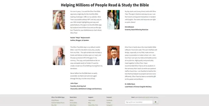 Olive Tree Bible is one of the renowned Bible translation apps that help millions of people to read the Bible quickly and feasibly. They are the electronic publisher of Bible versions that offers easy use Bible study tools and Christian eBooks. These apps are also referred to as the Android and iOS translation apps because they can run on any platform. Olive Tree Bible believes that God's love helps transform lives. So the software they offer is accessible to all platforms.