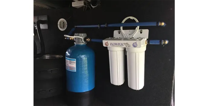 The Double Spec water softener & Conditioner delivers two times more gallons than the standard model and is the largest lightweight R.V. softener on the market. This sixteen thousand grain unit was designed for any R.V./Marine model owner and is fit and supplied roughly. It comes with forty percent soft water on the market rather than any other company. It is regenerated in less than thirty minutes in two boxes with ordinary table salt and brings the owner up to sixteen thousand gallons or up to forty days of soft water.