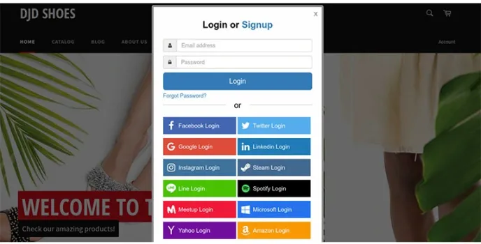 One-Click Social Login is one of the most useful Shopify plugins used for automatic signup and sign-in integration with all prominent and popular networks such as Facebook, Linkedin, Twitter, Google, Yahoo, Amazon, Line, and others. You can easily install the plugin quite comfortably and even customize it for your website. Enabling the plugin automatically or paste them manually into the template lets your users enjoy a more personalized experience.