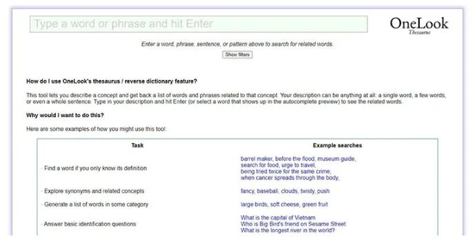 OneLook Reverse Dictionary - Traverse Synonyms And Related Concepts