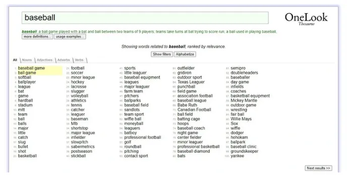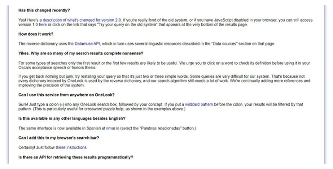 To make the best use of the OneLook dictionary, take the top few results. Not all the results can prove worthy. It is recommended to click on the word and check the definition before adding it to your speech. If the results throw up junk, then try using fewer meaningful words. If you are a blog writer, this is one of the best blogging tools you can trust.