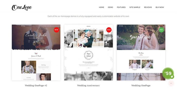 Arenβt weddings fun? They deepen relationships and make life beautiful. And for such beautiful occasions, there is a particular need for beautiful websites where wedding planners have all their details and catalogs of different kinds of weddings. For these event planning activities, Onelove provides unique wordpress themes that will capture your heart with soft colors and intricate designs. With its premium qualities and features, it is one of the popular wedding themes builders for wedding blogs and portals.