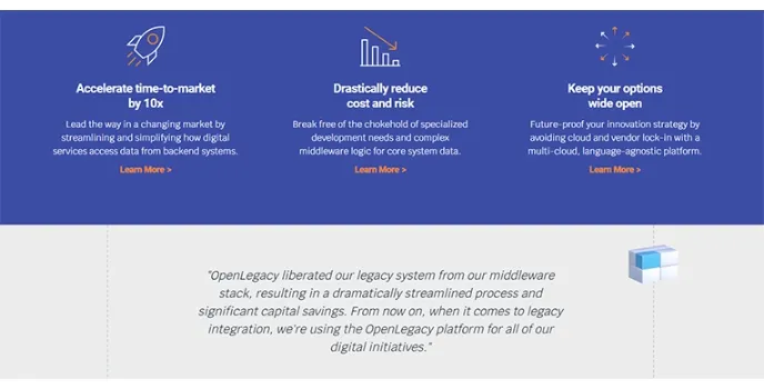 Avoid complex technologies and accelerate APIs functionality while performing in marketing tools for effective product and services results. The Open Legacy application integration tool is digital, cloud, and on-premises based software for web development that lets you deploy with plenty of options.