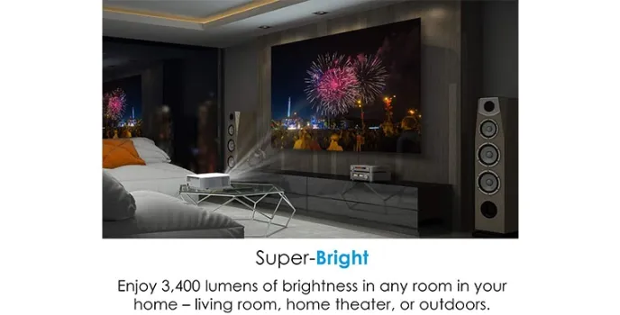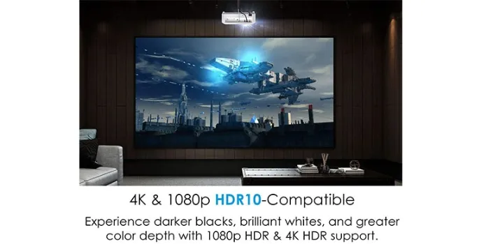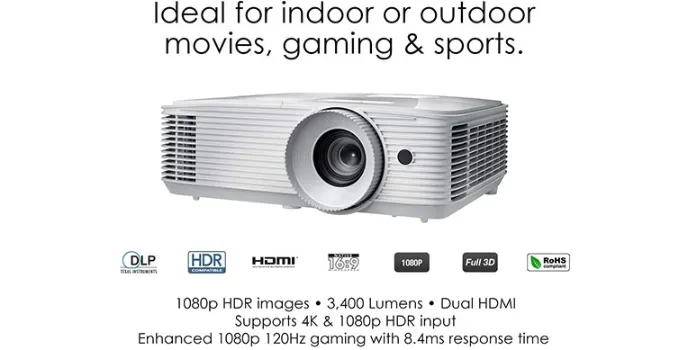 This projector is also super bright, with an incredible 3400 lumens illuminating the room or even outdoor settings. Optoma has HDR10 technology with DCI-P3 wide color gamut display that is useful to view perfectly and clearly.