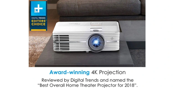 Optoma 4K UHD50 portable home theatre is placed among the Best 4K UHD projectors in the market. It can be either ceiling mounted or placed on the table due to the UHD50โs zoom, throw ratio, vertical lens shift, and keystone correction.