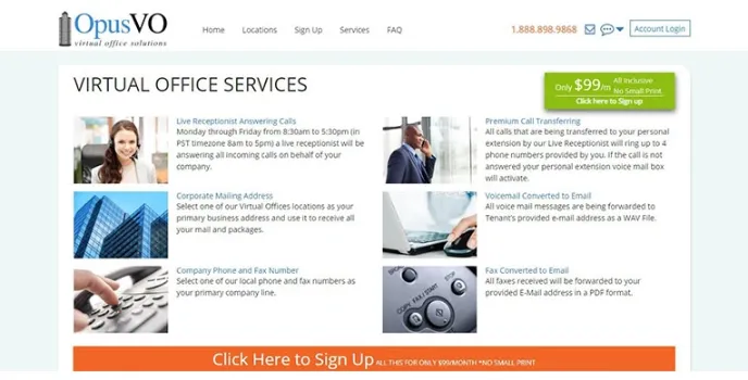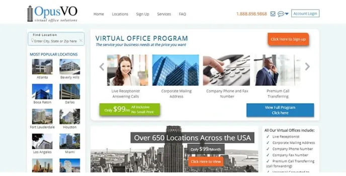 Suppose you're looking for an online virtual office service in a co-working and virtual office. In that case, you can opt for Opus as it provides you with an official space for rent giving you various features that make it to a virtual office program for corporate business and also provide a professional live answering call session. It also helps a service optimized business growth and reduces the need for a physical office space.