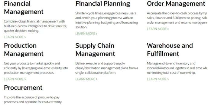 Netsuite ERP is a leader in the industry and smartly executes the combinations between management operations, and has built-in business intelligence. The ERP Software Company excels in accelerating the order-to-cash processes with robust and well-connected order management software. The platform offers sales and fulfillment operations and surprises with best-in-class production management features and increases market efficiency.
