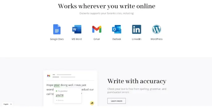 - Supportive for Google docs, MS Word and Outlook