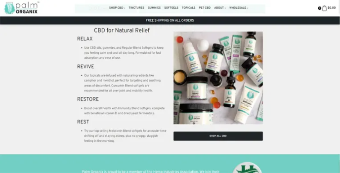 Palm Organix is the CBD company you can rely on for low prices on pure, premium, and effective cbd gummies for sleep and supplements grown in the United States. From the start, Palm Organix is a simple, refreshing brand. The website is immediately appealing and professional because of its turquoise and white color scheme. The founders founded the brand in 2018, and their family still runs it.