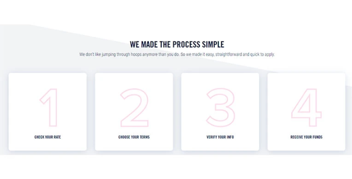 Pay Off has a simple application process and involves four steps for getting the loans. Firstly, you have to check the rates according to your loan amount and see what terms and conditions suit your specifications. Next, you have to verify all your personal information, and once that is done, you will receive the funds into your account.