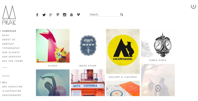Explore incredible wordpress themes for websites on Peak. It is a marvelous theme creator for impressive portfolios that attract people worldwide. It is effortless to set up and is very responsive. It responds well to changes and adjustments in page layouts, headers, and footers. It fits the screen perfectly and is adaptable to all the devices and website softwares. Its structure is grid-based, which enables the user's ease of accessibility and navigation options.